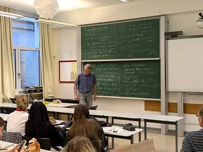 Dr. Kühnlein, der am Institut für Algebra und Geometrie forscht, nahm uns mit auf eine Reise durch die faszinierende Welt der Primzahlen. Mit viel Humor und spannenden Beispielen zeigte er, warum diese besonderen Zahlen nicht nur in der Schule, sondern auch in der „echten“ Mathematik eine große Rolle spielen – etwa in der Kryptographie oder der Zahlentheorie.