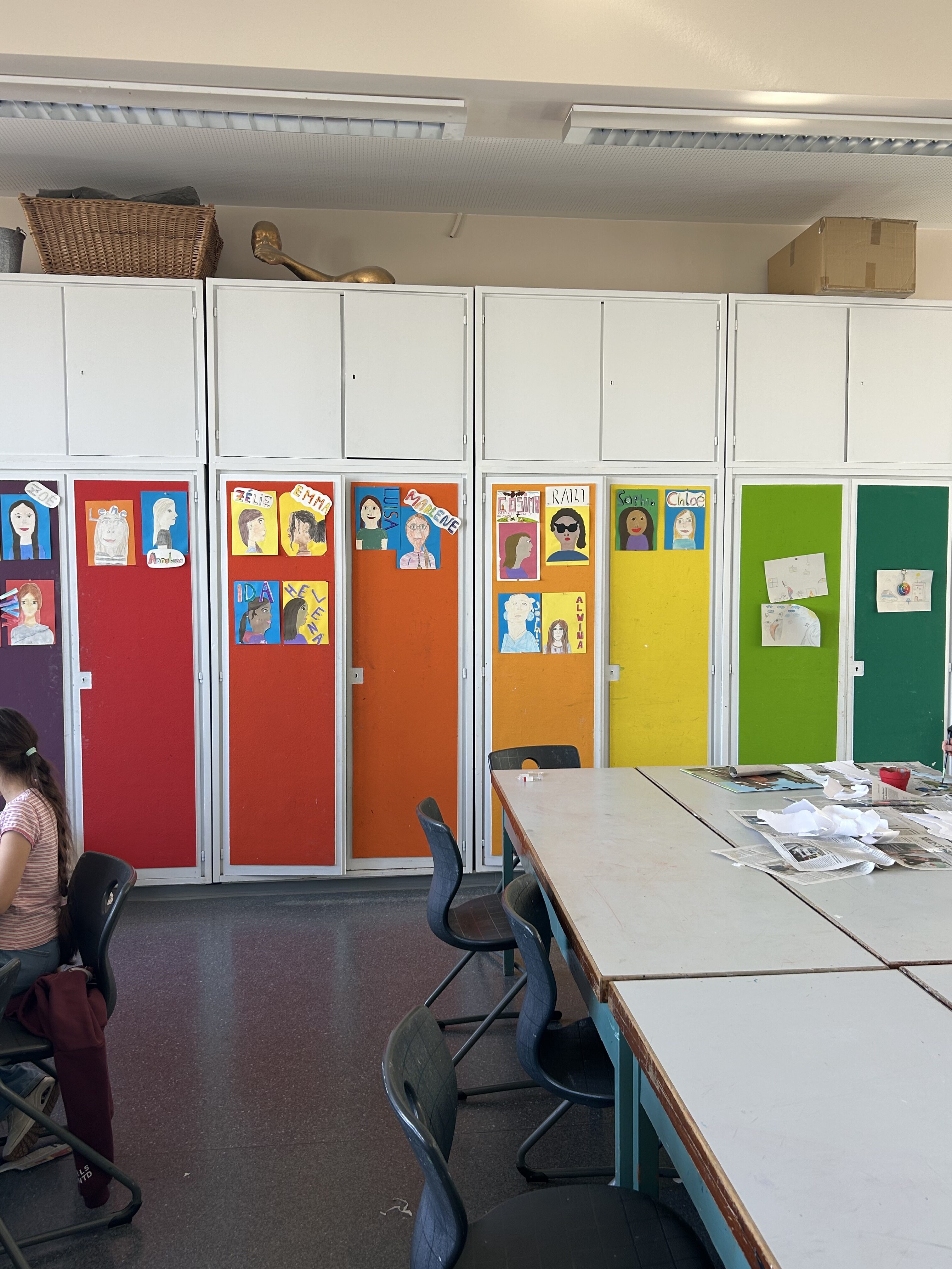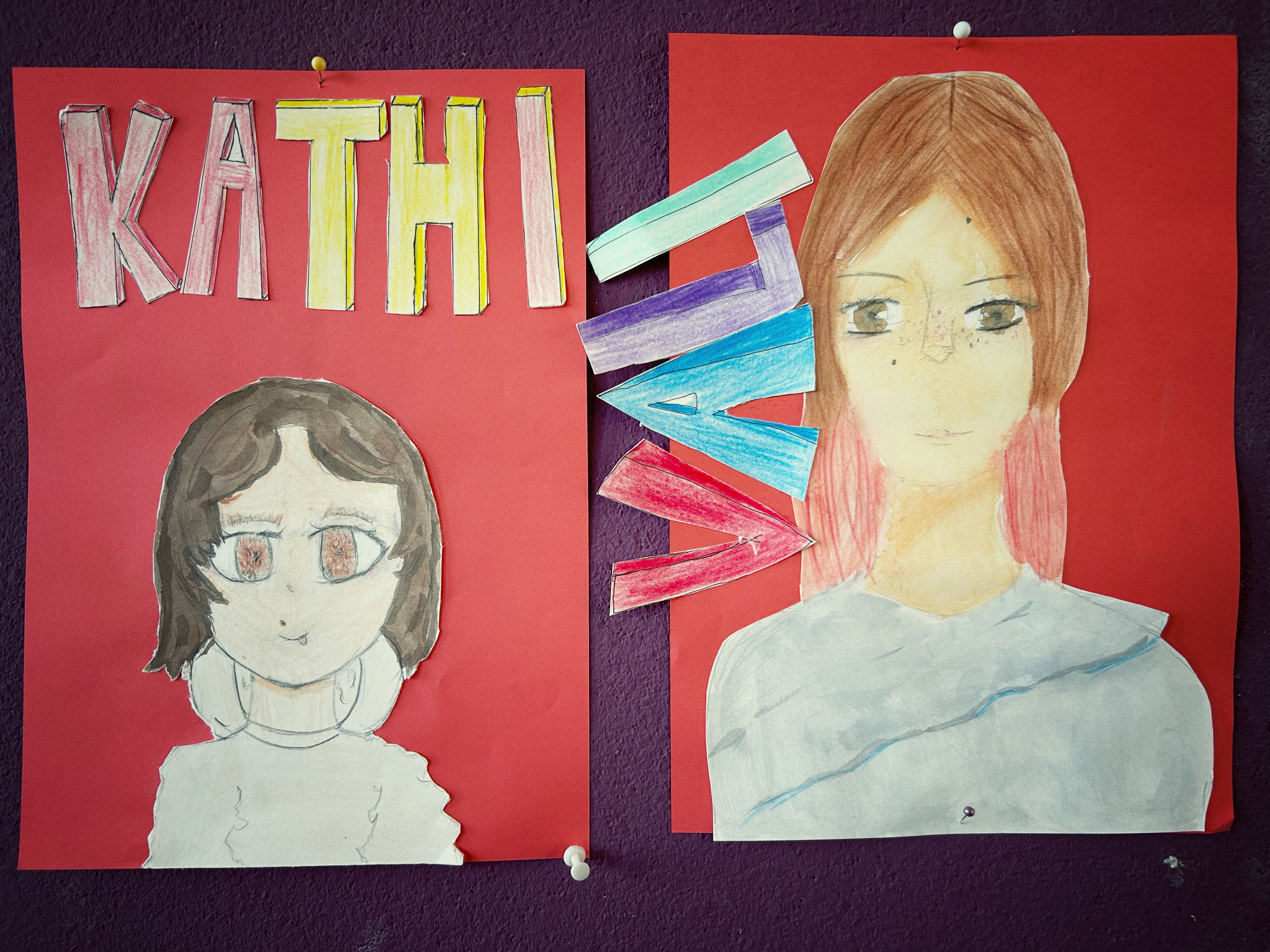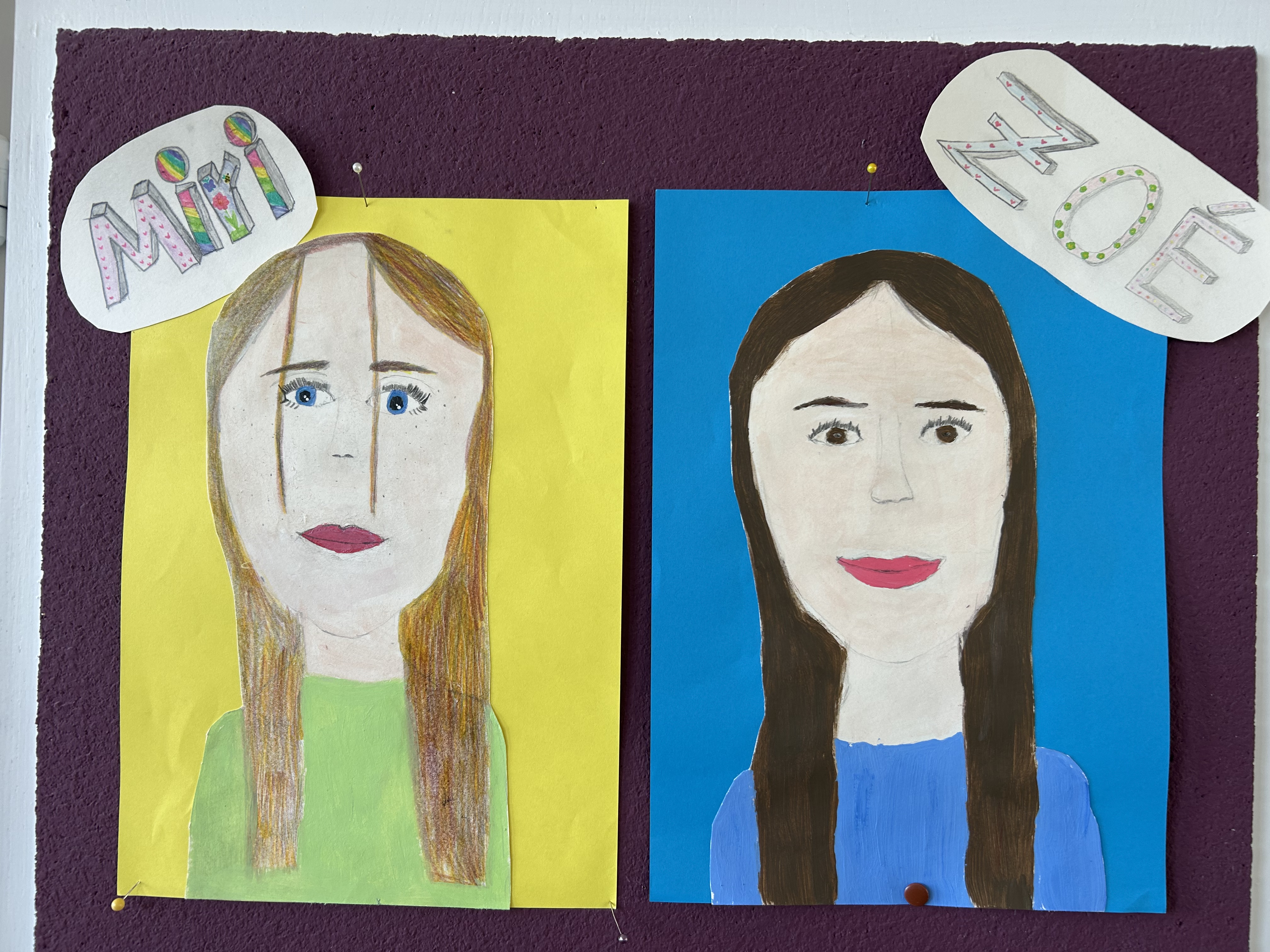 Die Schülerinnen der 5b portraitieren sich gegenseitig.