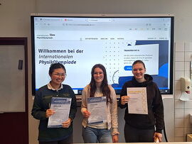 Als Jooyeon und Romi aus der J1 von der Physik-Olympiade erfahren haben, waren sie sofort Feuer und Flamme, sich dieser Herausforderung zu stellen. Ebenso ging es Mira und Nihara (ebenfalls J1) mit der Mathematik-Olympiade. Und sie haben die Herausforderung gemeistert und stehen in der 2. Runde! Herzlichen Glückwunsch und viel Erfolg weiterhin!!!